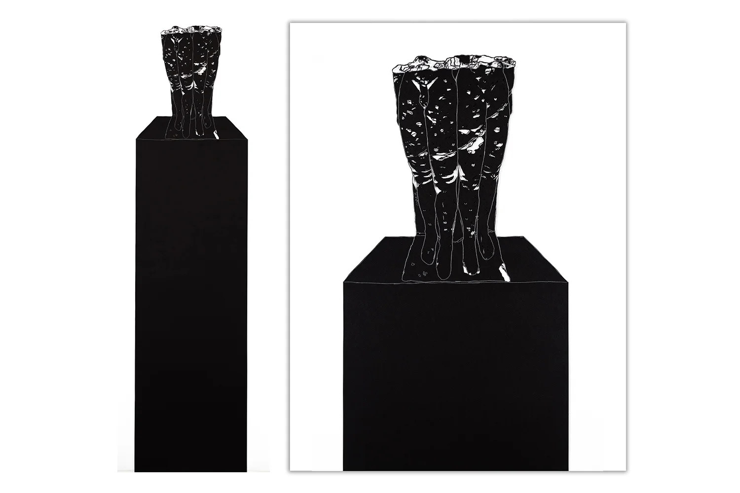 Israeli-American artist, Noa Yekutieli, draws from personal and historical documentation to explore the global enforcement and resistance to narrative formation in her exhibition ‘Pedestal’. Yekutieli’s use of imagery from present day Israel to ancient Grecian sculptures documents the movement of objects and people across time and space; from the anonymous to synonymous, ancient to modern, the remembered and forgotten. Probing the power dynamics of recorded history, Yekutieli makes evident that for every object representing our past, there are many more untold stories. Although the ancient sculptures are a direct record of history, the exhibition accounts for the underrepresented and the power of preservation.